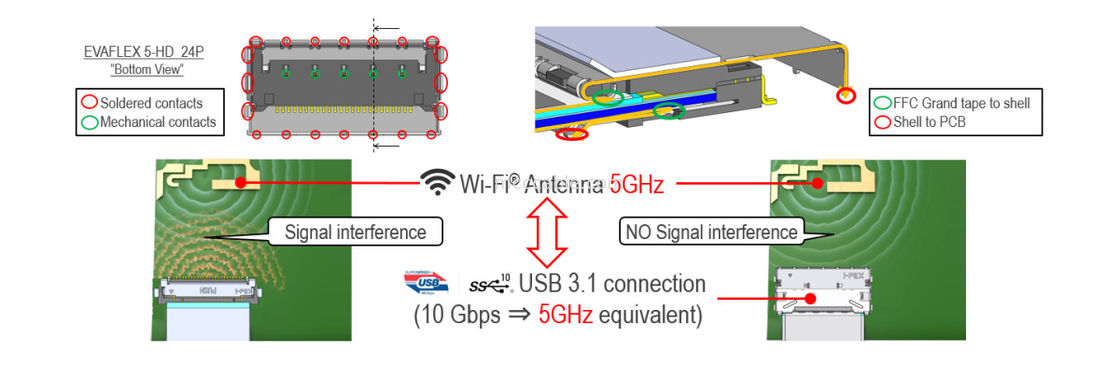 เครื่องเชื่อม FPC 20952-024E-02 ด้วยขนาดเล็ก และความสามารถในการป้องกัน
